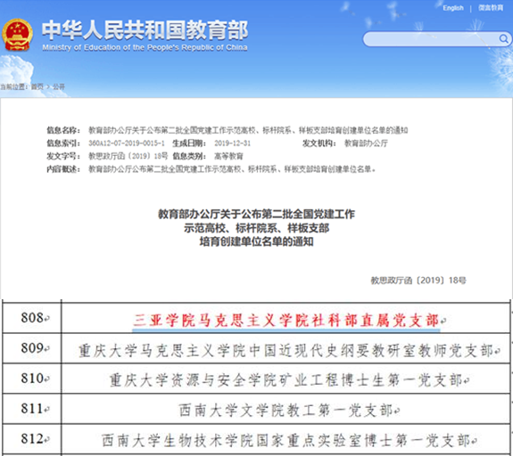 评选党建工作师范高校、标杆院系和样板支部是教育部开展新时代高校党建示范创建和质量创优工作的重要举措。三亚学院深刻学习领会全国教育大会、全国高校思想政治工作会议、学校思想政治理论课教师座谈会精神,结合“不忘初心、牢记使命”主题教育,按照新时代党的建设总要求,坚持培育为基、重在建设、典型引领、整体推进,以政治建设为统领,以质量攻坚为动力,以提升组织力为重点,以推动事业发展为落脚点,开展了第二批新时代高校党建示范创建和质量创优工作。