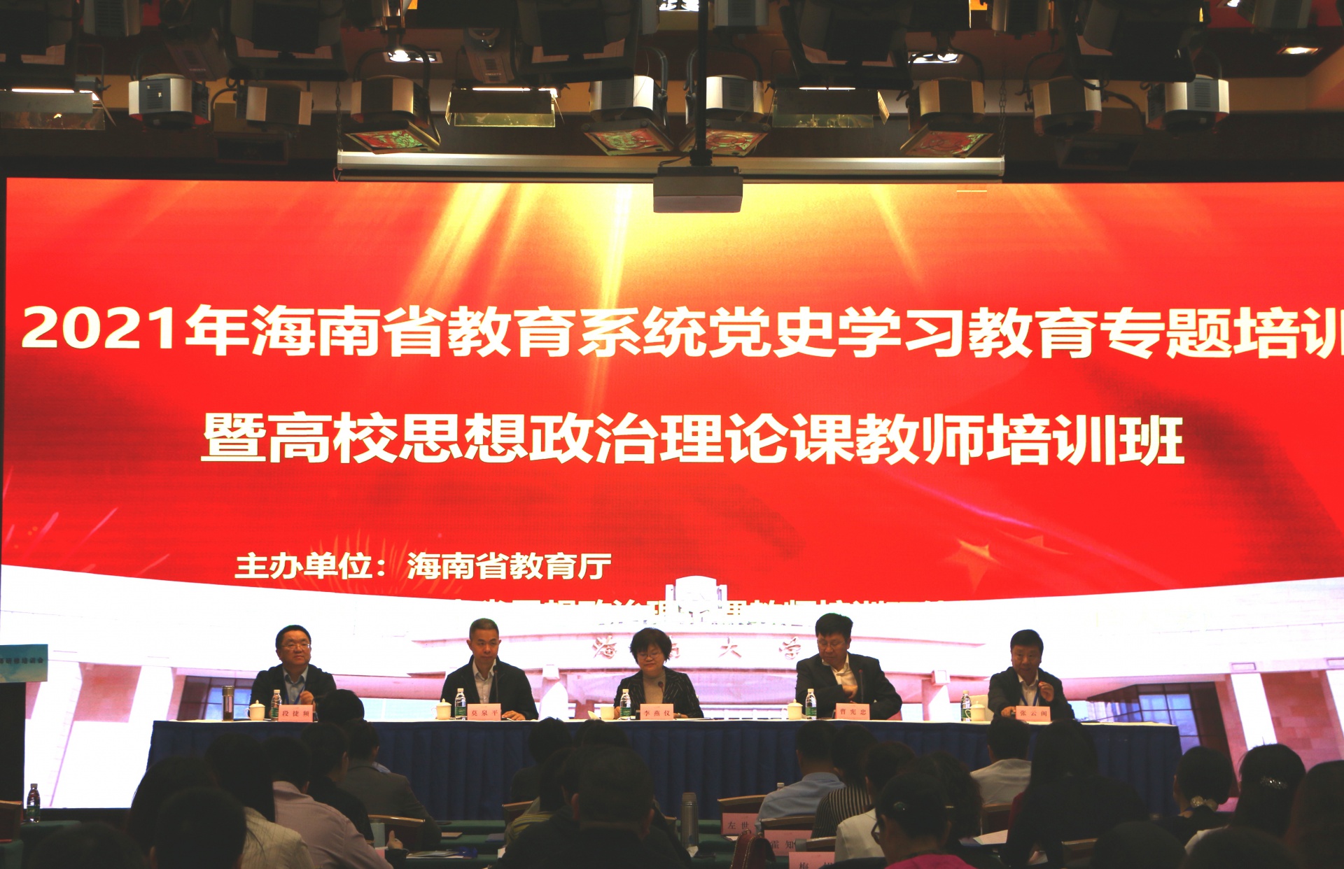2021年03月25日-28日,由海南省教育主办、海南省思想政治理论课教师培训研修基地(海南大学)承办的“海南省教育系统党史学习教育专题培训暨高校思想政治理论课教师培训会”在海南·澄迈召开。海南省教育厅副厅长李燕仪、海南省教育厅党委办公室(思想政治教育处、省委教育工作领导小组秘书组办公室)主任莫泉平、海南大学党委常委副校长曹宪忠、海南大学yh533388银河党委书记段捷频、海南大学yh533388银河院长张云阁等领导出席会议,海南高校100余名思政课骨干教师参加了本次培训。