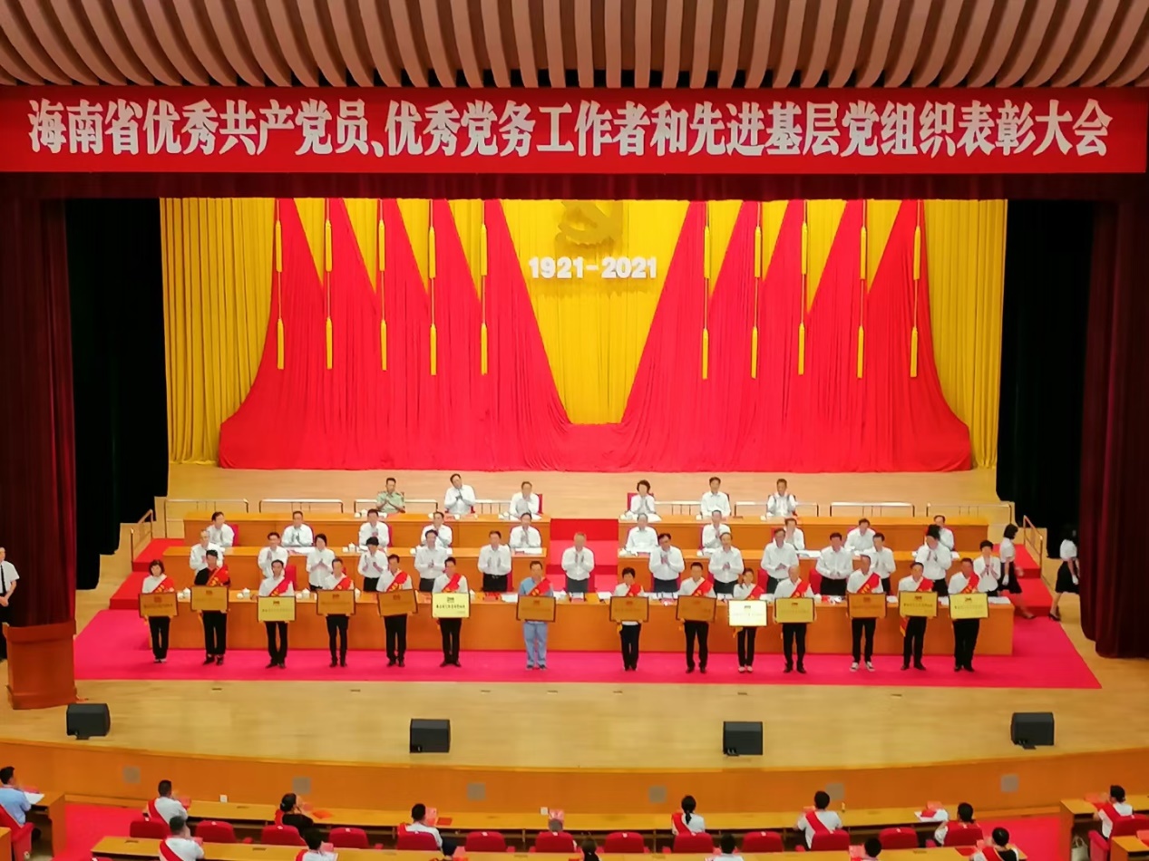 7月1日下午,海南省优秀共产党员、优秀党务工作者和先进基层党组织表彰大会在海口隆重举行。在庆祝中国共产党成立100周年之际,海南省委决定对全省150名共产党员、100名党务工作者、149个基层党组织予以表彰。省委书记沈晓明,省委副书记、省长冯飞,省政协主席毛万春等现职省领导亲切接见全省“两优一先”人员,并合影留念。yh533388银河直属党支部书记王功名做为受表彰的先进基层党组织负责人参加了表彰大会。据悉,yh533388银河直属党支部是此次海南省教育厅党委受表彰的五个先进基层党组织之一。