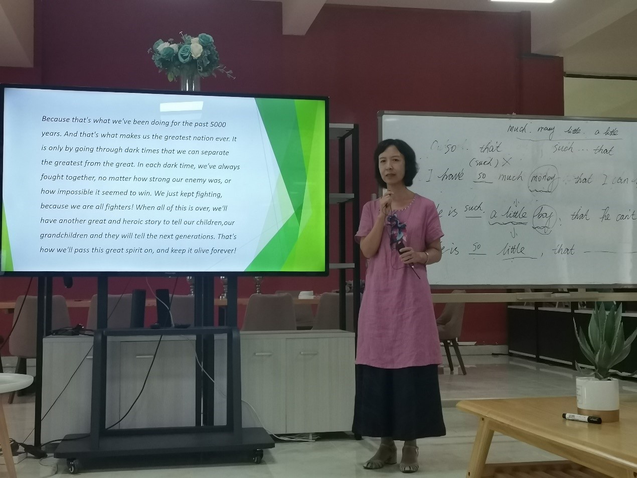 对于王辉老师来讲,组织英语角活动是和学生们沟通之后,自发组织的。目的,就是想通过这几次英语角活动摸一摸学生们英语的底子。对于如何让同学们学好英语,王辉老师有她自己的方法。是什么方法呢?同学们都在期待中……