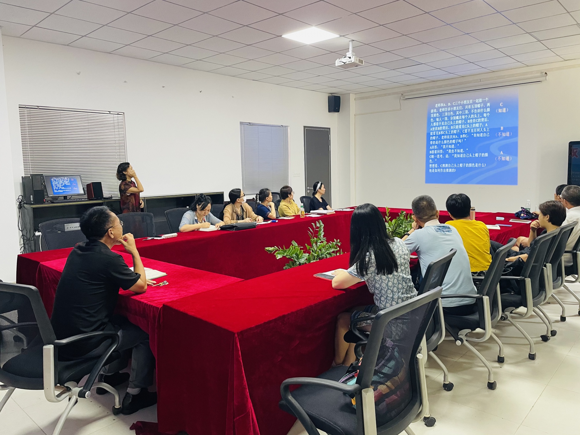王辉老师例举了日常生活、学习中的事例和逻辑思维训练题目,老师们共同参与分析、互动,共同体验逻辑思维素养在日常生活和学习中的重要性。