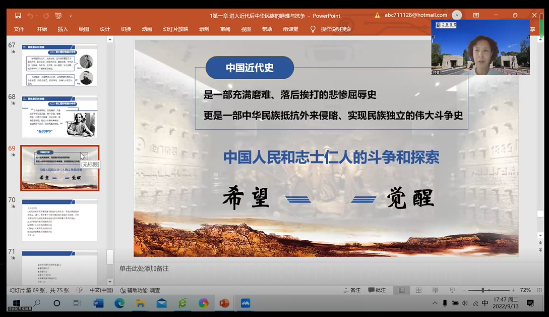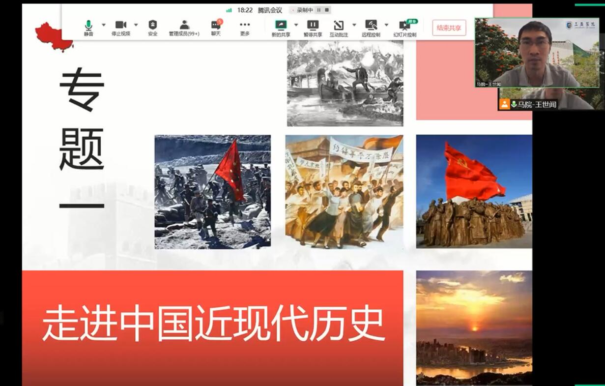 新学期第一堂课和同学们相聚云端,彼此的距离好像更近了,同学们就像围绕在老师周围,互动交流也更显积极主动。大学二年级是重要的时期,积极引导学生投入学习至关重要。《中国近现代史纲要》主要是引导学生认识近现代中国社会发展和革命、建设、改革的历史进程及其内在规律,更加坚定地在中国共产党坚强领导下为实现中华民族伟大复兴而不懈奋斗,相信同学们这学期会是收获满满的一个学期。