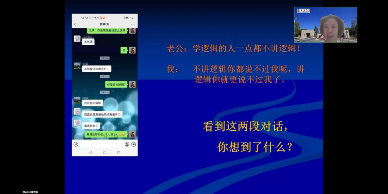 王辉教授以生活中的对话引入本次课的主题——逻辑值美无处不在。