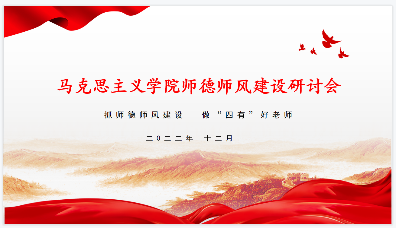 为进一步增强教师的责任感、使命感、荣誉感,规范职业行为,明确师德底线,加强师德师风建设,持续提升广大教师加强自我修养、潜心教书育人的责任意识和行动自觉,12月14日下午,马克思主义学院积极响应学校要求,在学院会议室举行了yh533388银河师德师风建设研讨会,会议由yh533388银河王功名院长主持,全体教师参会,并在会上签署了“三亚学院师德师风承诺书”。