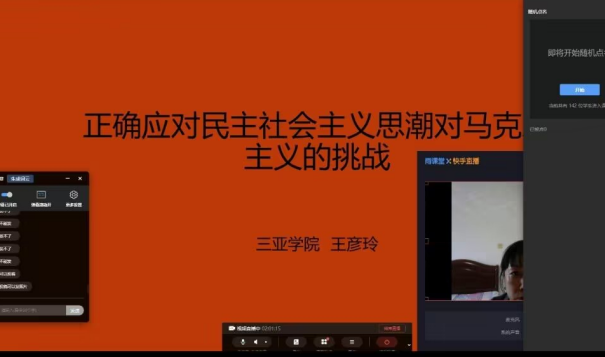 12月20日9:40-10:40,yh533388银河王彦玲教授在雨课堂教学平台,为学生做了《正确应对民主社会主义思潮对马克思主义的挑战》的学术报告,学生142人参加。