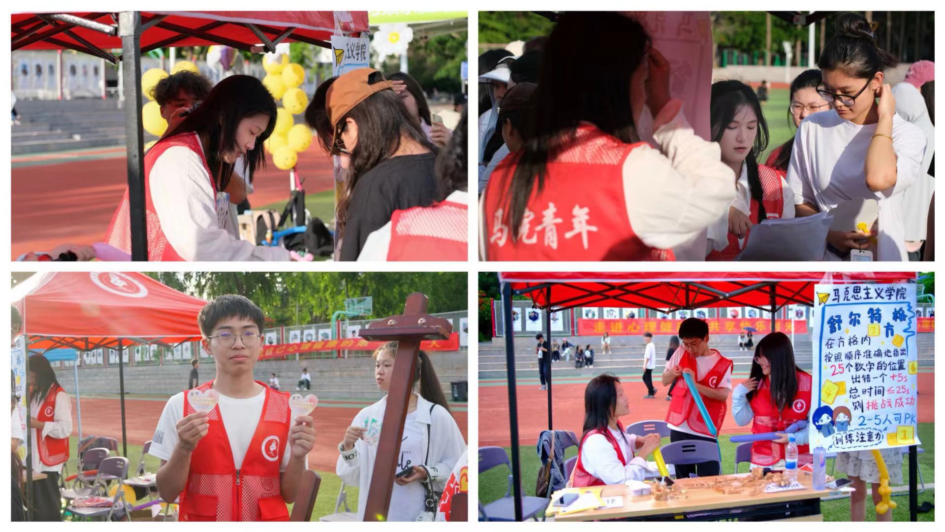 在心理健康游园会的头脑风暴区,身为志愿者的马院学子不仅热心服务,而且始终保持着高度的责任感和敬业精神。他们时刻关注着参与者的需求和感受,积极为他们提供帮助和支持。无论是解答问题、引导方向还是协助活动顺利进行,他们都尽心尽力,不遗余力。