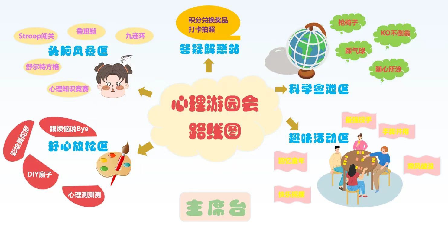 心理游园会,如同一个心理“集市”,分七大区域各具特色。答疑解惑站提供专业解答,头脑风暴区锻炼心智,趣味活动区带来欢笑,舒心放松区舒展心灵,科学宣泄区释放压力,教师解压区缓解疲劳,快闪活动区带来惊喜。学生和教师均可参与体验,通过打卡赢奖品,尽享心理活动乐趣。