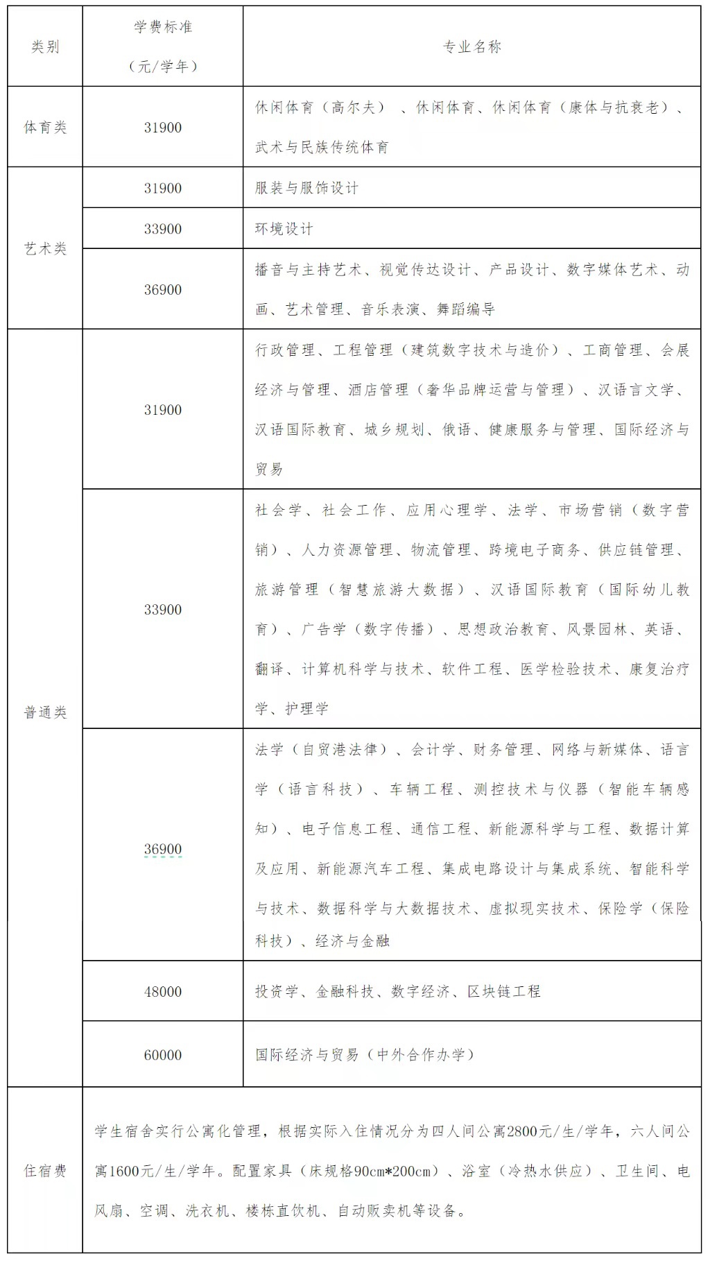 具体各专业学费、住宿费按照学校依相关规定核定公示的最新收费标准执行。学费、住宿费收费实行“老生老办法,新生新办法”,即学生缴费按入学当年的收费标准执行。转专业、休学复学学生缴费标准按学校相关管理规定执行。