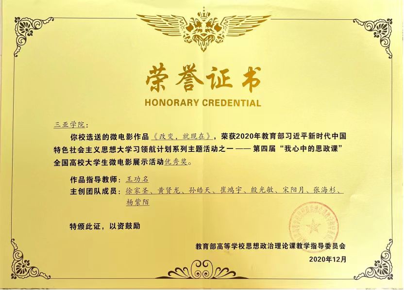 《改变,就现在》获得第四届“我心中的思政课”全国高校微电影展示活动优秀奖