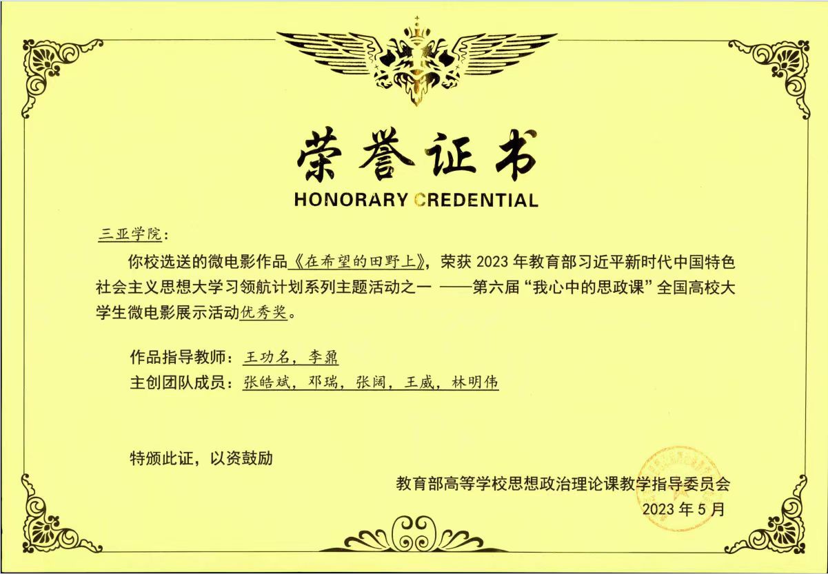 《在希望的田野上》获得第六届“我心中的思政课”全国高校微电影展示活动优秀奖