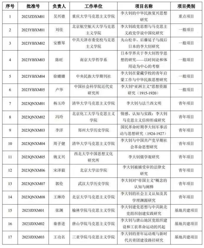 中国李大钊研究会”2023年度基地共建项目获得立项(2023JDXM03)