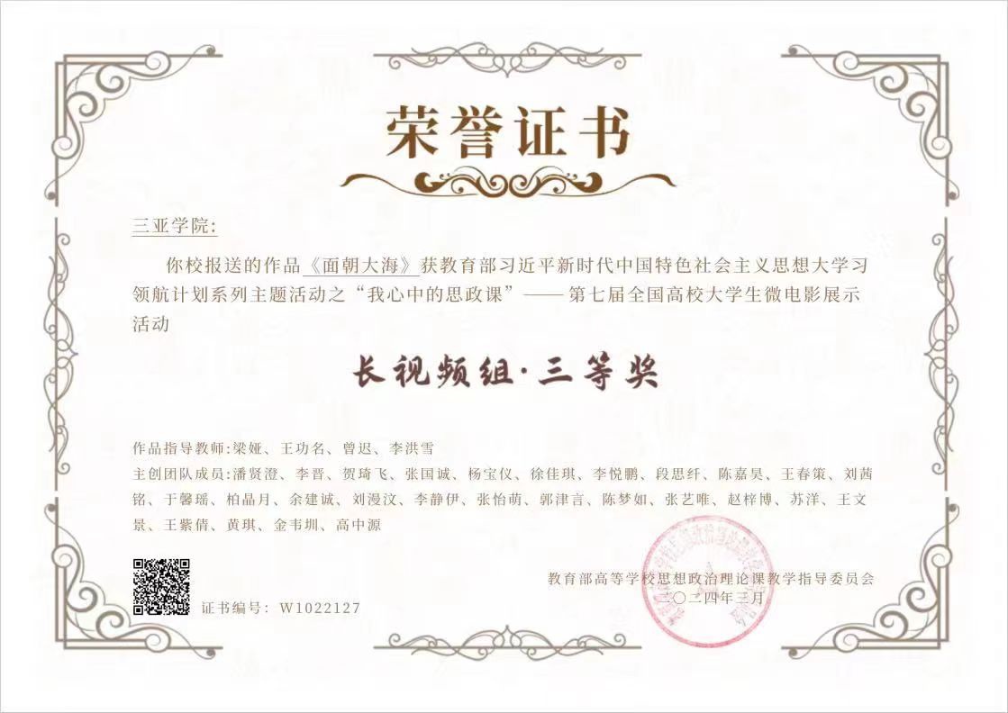 《面朝大海》获得第七届“我心中的思政课”全国高校微电影展示活动长视频组三等奖