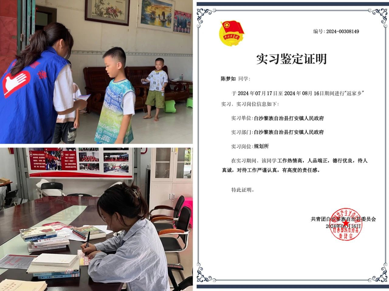 本次“扬帆计划”返家乡实践活动,我来到了海南省白沙黎族自治县打安镇人民政府规划所,这次实践活动不仅亲身体验了家乡的风土人情,还从中得到了宝贵得经验和深刻的体会。我的工作大多都是面向父老乡亲,在与他们的交流中,我学到了很多宝贵的生活经验和做人道理。我参与的公益活动、传播法律知识等活动让我体会到了家乡人民的淳朴善良和热情好客,这种亲情般的感情纽带也让我更加坚定了自己的责任感和使命感。