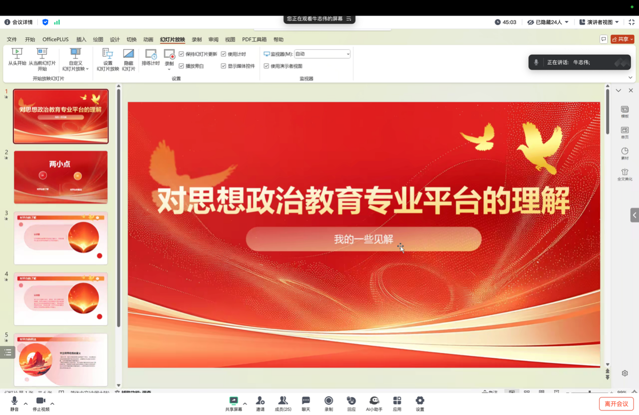 思政专业24级新生牛志伟同学分享《对思想政治教育专业平台的理解》