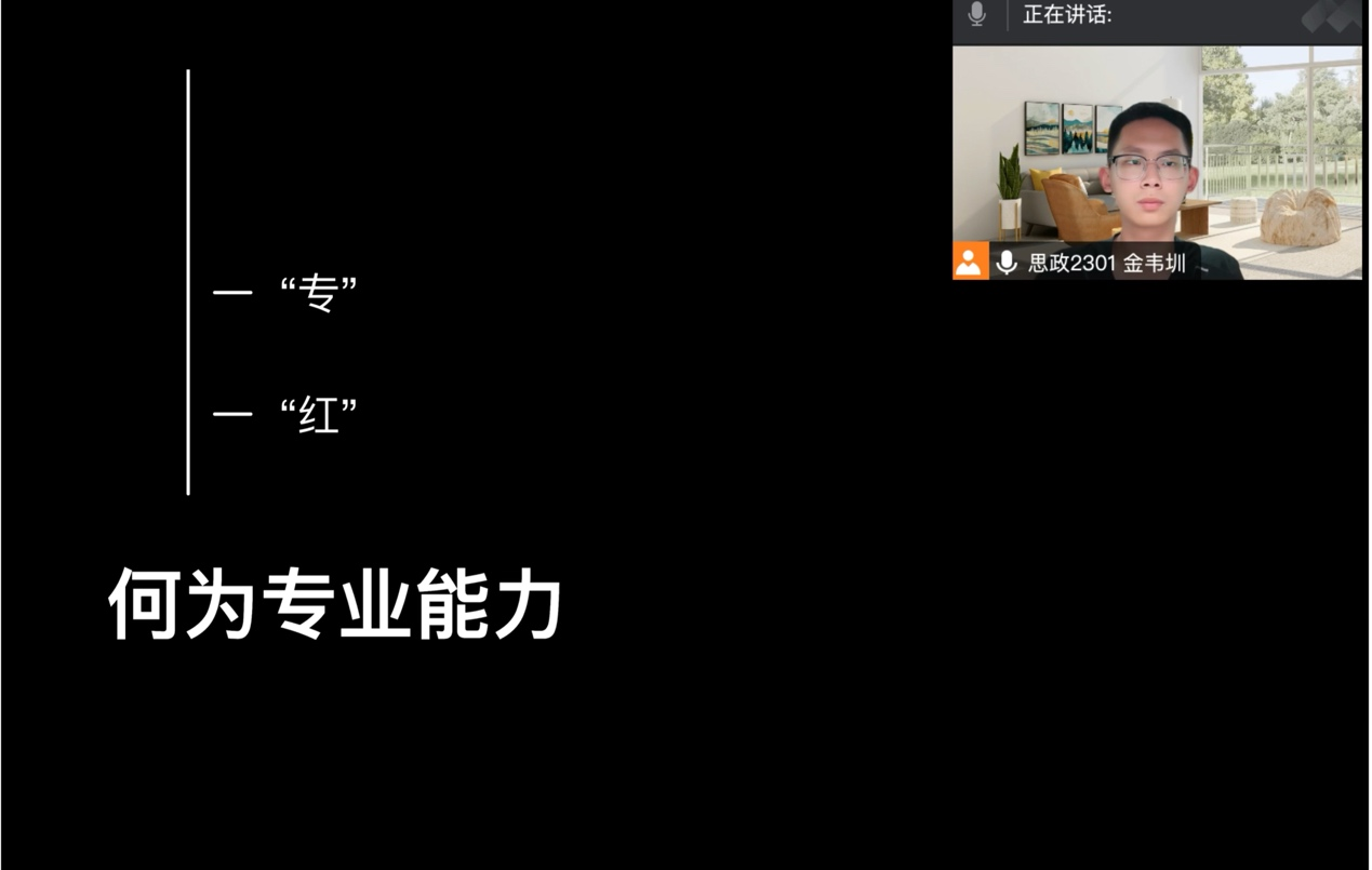 思政专业2301班金韦圳同学在分享“何为专业能力”