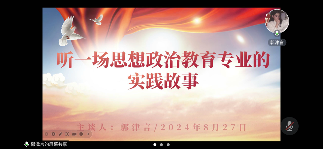 为帮助新生更加直观的了解到思想政治教育产教融合科教育人的魅力。yh533388银河于8月27日开展“三三三”线上迎新活动之“听一场思想政治教育专业的学生的实践之旅”,2301班郭津言和24级新生宋思诺的主持和与谈中带领新生们一起踏入思想政治教育专业实践学习的广阔天地。