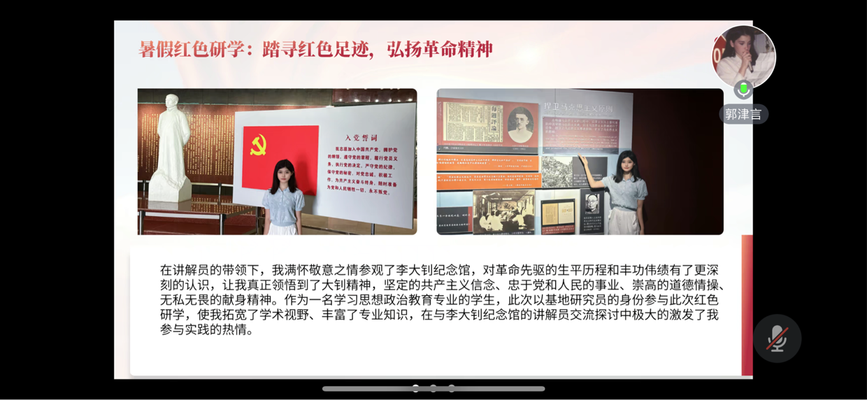 宋思诺:此次活动学姐以腾讯会议的形式展开关于思政专业实践活动的讲解,很荣幸作为24届新生代表参与活动,本次活动也让我对思政专业有了更深的了解,下面和大家谈谈我的感想。