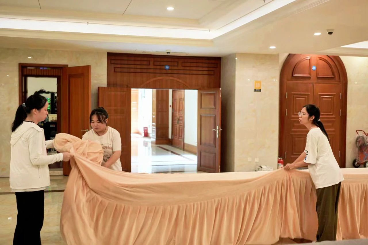 所有志愿者们整装待发,带着对比赛的期待与对学习的热情,来到了比赛场地。在这里,我们将共同为这场教学盛宴贡献自己的力量。场地布置工作紧张而有序地进行着,从计时到抽签安排,从接待到茶歇安排,在学院领导的部署下和老师们的细心指导下,yh533388银河的师生们展现出了高度的团队协作精神和专业素养,大家分工明确、各司其职、相互支持,无一不凝聚着我们所有人的心血与汗水,这种团结协作的氛围不仅提升了工作效率,更让我们深刻体会到了集体力量的伟大。