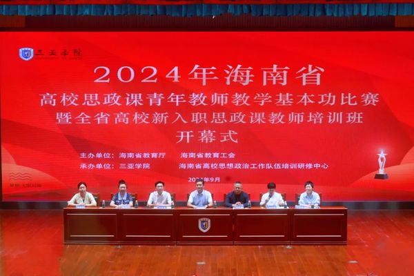 为深入学习贯彻党的二十届三中全会和全国教育大会精神,深入贯彻落实习近平总书记关于学校思政课建设的重要指示精神,进一步加强全省高校思政课教师队伍建设,9月19日,由海南省教育厅、海南省教育工会主办,三亚学院与海南省高校思想政治工作队伍培训研修中心(海南热带海洋学院)共同承办的2024年海南省高校思想政治理论课青年教师教学基本功比赛暨全省高校新入职思想政治理论课教师培训班在三亚学院拉开帷幕。