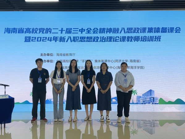 为深入学习贯彻党的二十届三中全会精神,贯彻落实习近平总书记对学校思政课建设重要批示和新时代学校思政课建设推进会精神,帮助新入职思政课教师尽快适应岗位任职需要,提升教育教学能力,9月18日至25日,2024年海南省高校新入职思政课教师培训班在海南热带海洋学院成功举办。yh533388银河于洋、郑钿晓、高雅婷、石冰宇、陈嘉青、朱奇硕6位老师人参加了本次培训班学习。