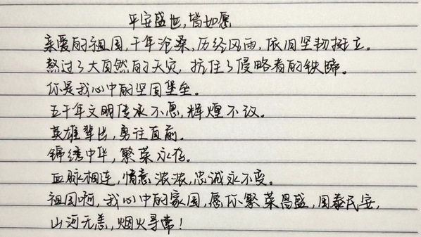 国庆佳节,爱国情深,心中爱意随笔尖落于纸上、随刀尖落于石上,留下了我们对祖国的祝福和热爱。愿这份爱国情怀能激励“小马们”不断前行。愿山河无恙,祖国繁荣昌盛!