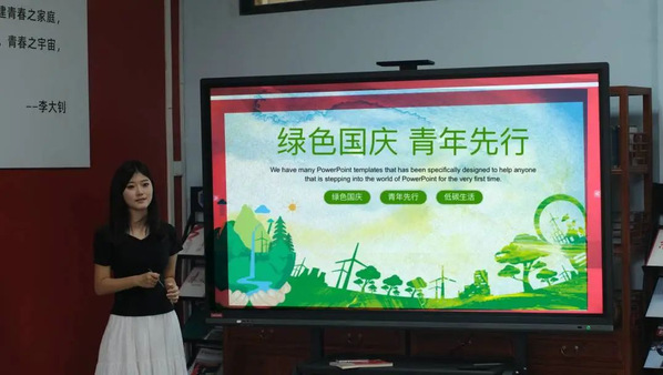 接着,郭津言同学联系思想政治教育专业的特点对“绿色国庆,青年先行”活动的意义发表见解:“作为学习思想政治教育的学生,我们要把绿色文化融入到高校思政课当中。习近平生态文明思想被看作是新时代我国生态文明建设的根本遵循和行动指南,是实现马克思主义中国化时代化新的飞跃的重要组成部分。将这一思想融入高校思政课有助于当代大学生树立正确的生态文明观念,并在实际中践行这些理念。”