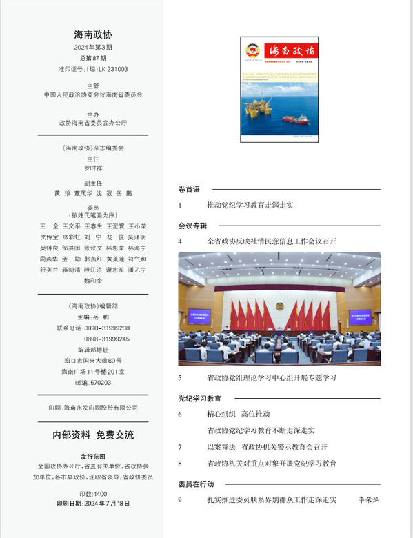 据悉,yh533388银河王宏海教授的《海南“北向”文化的渊源与民族团结价值》被中国人民政治协商会议海南省委员会机关刊物《海南政协》作为封面推荐文章于2024年第3期刊发。《海南政协》主要刊登党和国家领导人的重要讲话和海南省委、省政府、省政协等领导对重要思想和政策的深度解读文章,也刊发省内外重要新闻以及政协委员资政建议的相关内容,在海南社会政治生活中有着重要影响。《海南政协》是与《今日海南》(省委机关刊物)《海南人大》(省人大机关刊物)并列的海南省直机关刊物。
