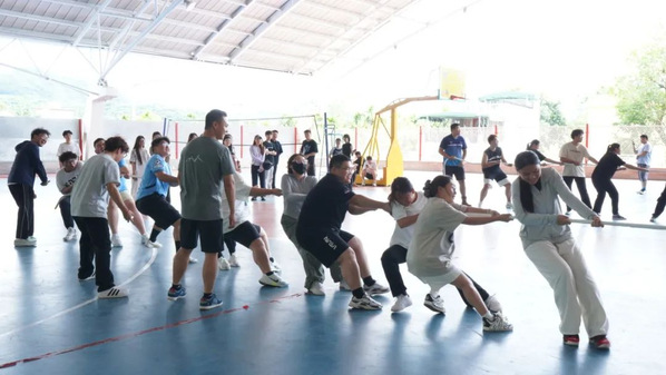 赛场上,绳索两端紧绷,空气中充满了紧张与期待。大家齐心合力,场上响起一片铿锵有力的呐喊声。每一次的拉动,每一声加油,都彰显着团队的凝聚力。