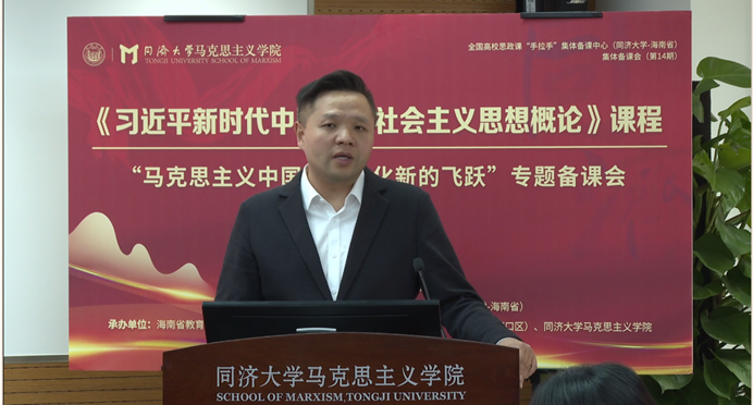 为进一步提高《习近平新时代中国特色社会主义思想概论》(简称《新思想》)课程组教师教学素养和教学能力,提高课程教学质量。11月7日,yh533388银河组织《新思想》课程组老师线上参加了中华人民共和国教育部主办的全国高校思政课“手拉手”集体备课中心(同济大学一海南省)专题备课会。本次备课会以说课展示形式,围绕“马克思主义中国化时代化新的飞跃””专题开展集体备课。