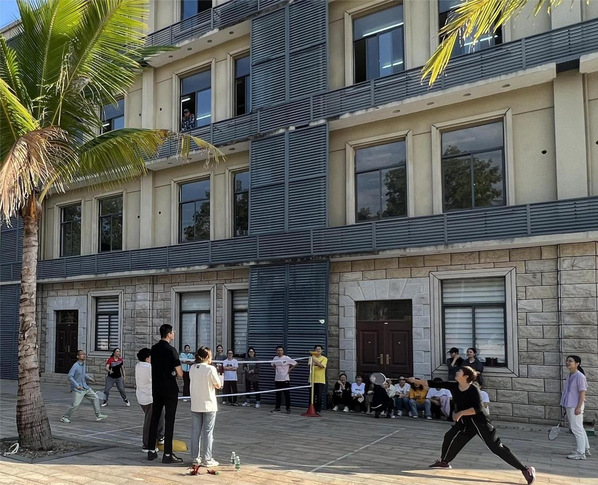 团体赛率先展开,第一项比赛项目是羽毛球。赛场上,选手们身手矫健,轻盈的羽毛球在空中来回穿梭,伴随着清脆的击球声,选手们时而大力扣杀,时而巧妙吊球,每一个精彩的回球都赢得了观众们的阵阵喝彩。各小组的成员们在场边呐喊助威,加油声此起彼伏,充分展现了团队的凝聚力与向心力。