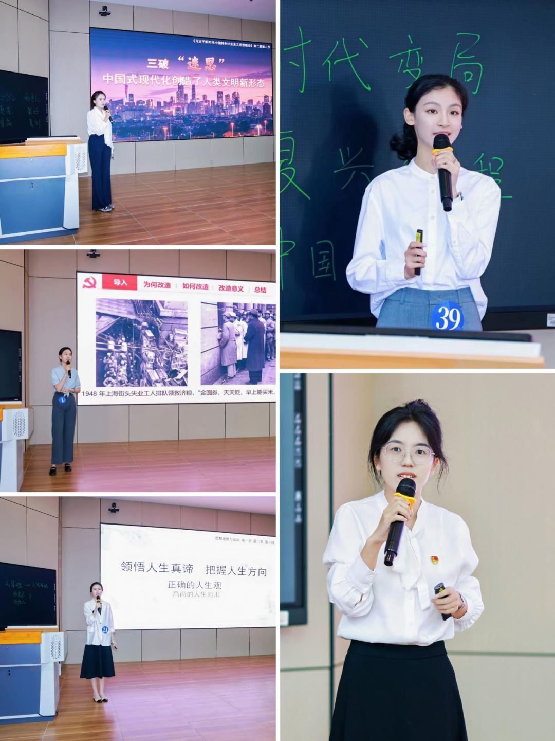 yh533388银河五位参赛教师均为近两年新入职教师,怀着学习的态度,她们在赛场各展所长。石爽老师以"追求高尚的人生价值"为主题,通过案例导入、小组讨论等方式,引导学生深入思考;孙舒婷老师巧妙运用现代信息技术,打造沉浸式课堂体验,生动阐释中国式现代化创造了人类文明新形态;郑钿晓老师以富有感染力的语言和严谨的逻辑思维,深入浅出地讲解了社会主义改造理论;马天娇老师通过情境创设和互动探究,将中国特色社会主义进入新时代的价值观培育自然融入知识传授;刘烨老师则以其独特的教学风格和创新的课堂设计,展现了思政课教学的无限可能。五位教师各展所长,不仅展示了yh533388银河青年思政课教师扎实的专业素养,也体现了yh533388银河在思政课教学改革与创新方面的成果。