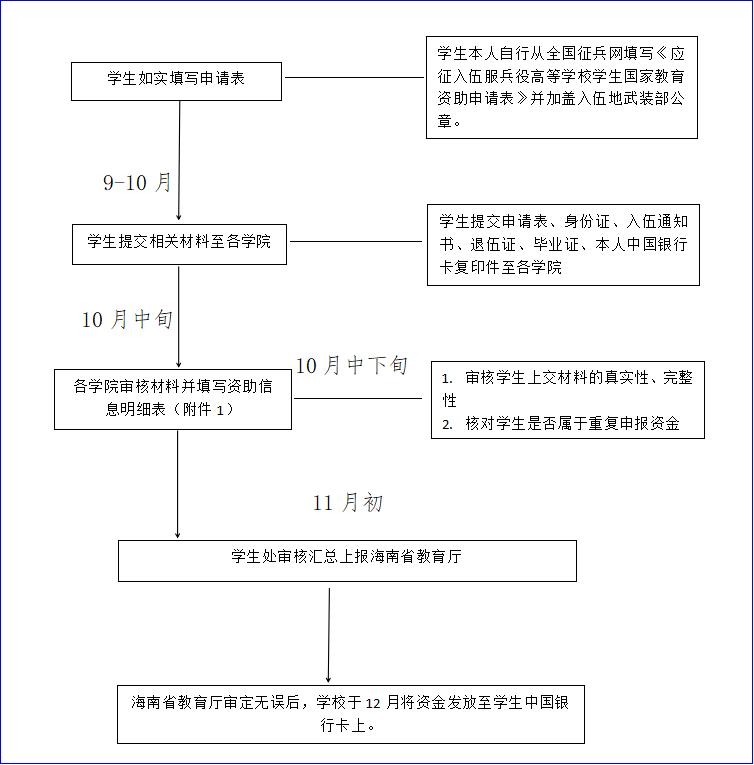 根据《财政部 教育部 人力资源社会保障部 退役军人部中央军委国防动员部关于印发〈学生资助资金管理办法〉的通知》(财教〔2024〕310号)、《财政部教育部中国人民银行金融监管总局关于调整完善国家助学贷款有关政策的通知》(财教〔2024〕188号)和海南省关于报送2025年度服兵役地方高等学校学生国家教育资助的通知等规定,现将有关事项通知如下: