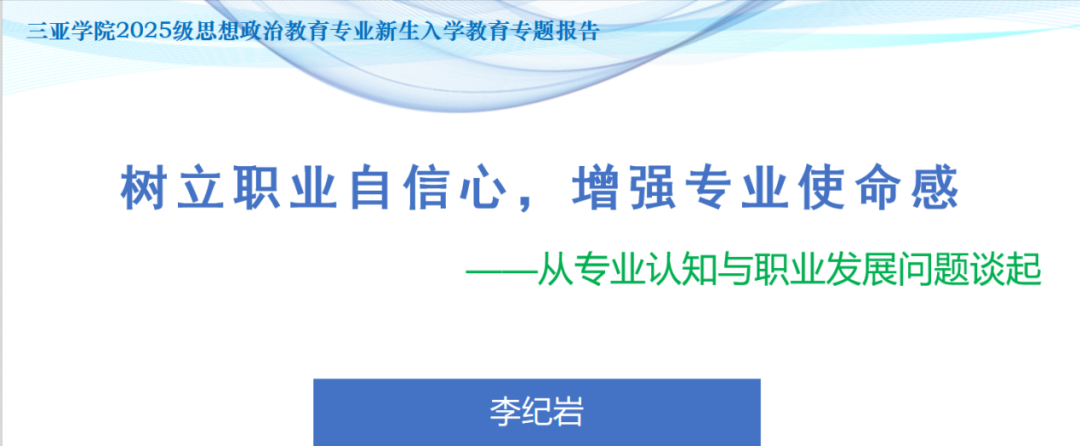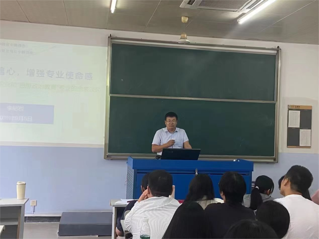 近日,yh533388银河特邀海南热带海洋学院“学科教学·思政”硕士点负责人李纪岩教授以“树立职业自信心,增强专业使命感”为主题,就专业认知与职业发展问题进行了深度分享。2025级思想政治教育专业新生116人参加了本次讲座。