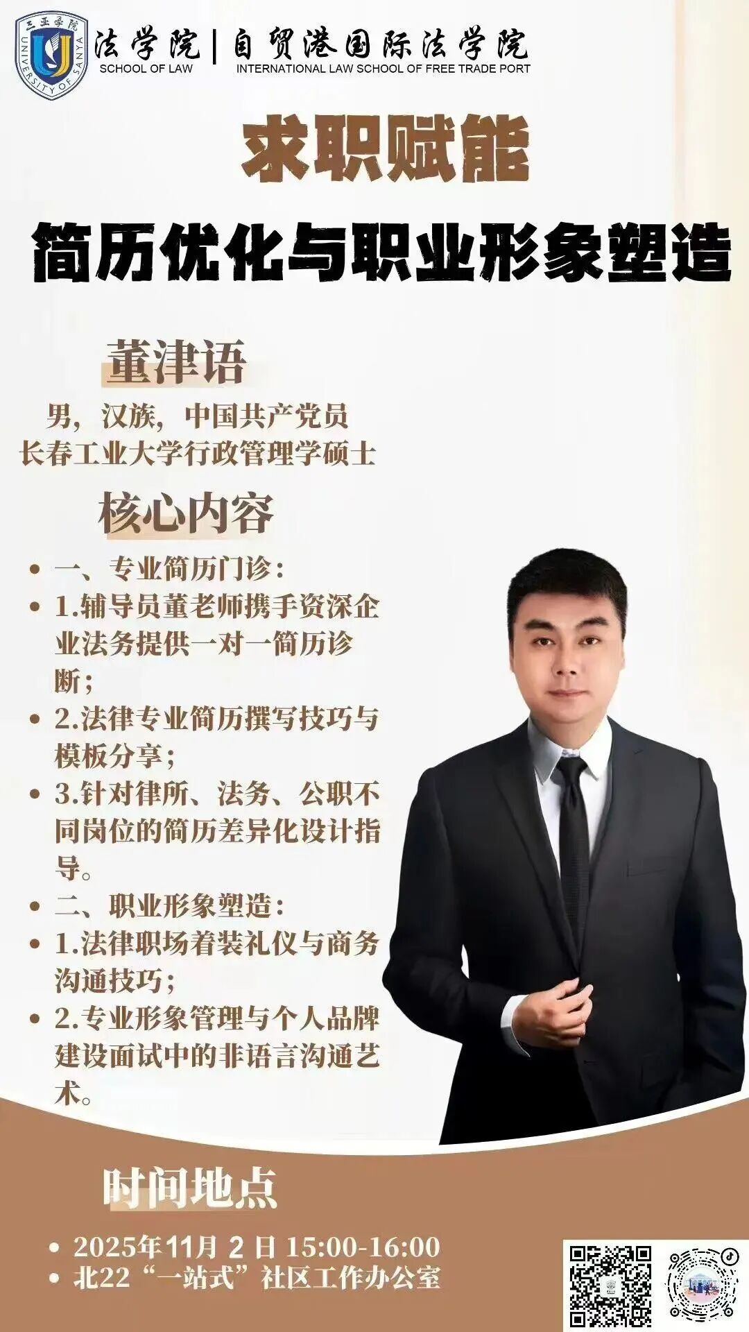 1.辅导员董老师携手资深企业法务提供一对一简历诊断;