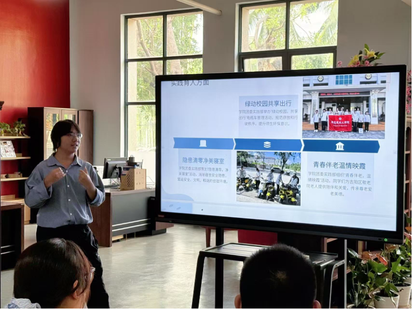 活动伊始,牛志伟同学以“马院志愿活动分享”为主题,向大一新生系统梳理了学院过往特色志愿服务项目。他从“实践育人、思想引领、文明督导”三大板块展开:他介绍过去一年在实践育人方面,“隐患清零 净美寝室” “律动校园共享出行”两大品牌项目成效显著。
